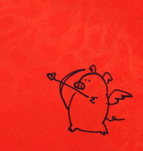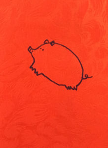 今年在包給小姪子們的紅包袋上,由於苦惱豬年賀詞量不足,突發奇想地在紅包袋上畫小小的豬插圖,其實頗有特色,或許明年開始就可以代替簽名了?
